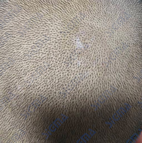 某兒童患者,頭皮部白癜風,按照醫(yī)生指導,剪短頭發(fā)后進行照光治療,隔日一次。使用308 SQ LED治療一個半月,白斑面積顯著縮小;繼續(xù)光療三個多月,基本痊愈。
